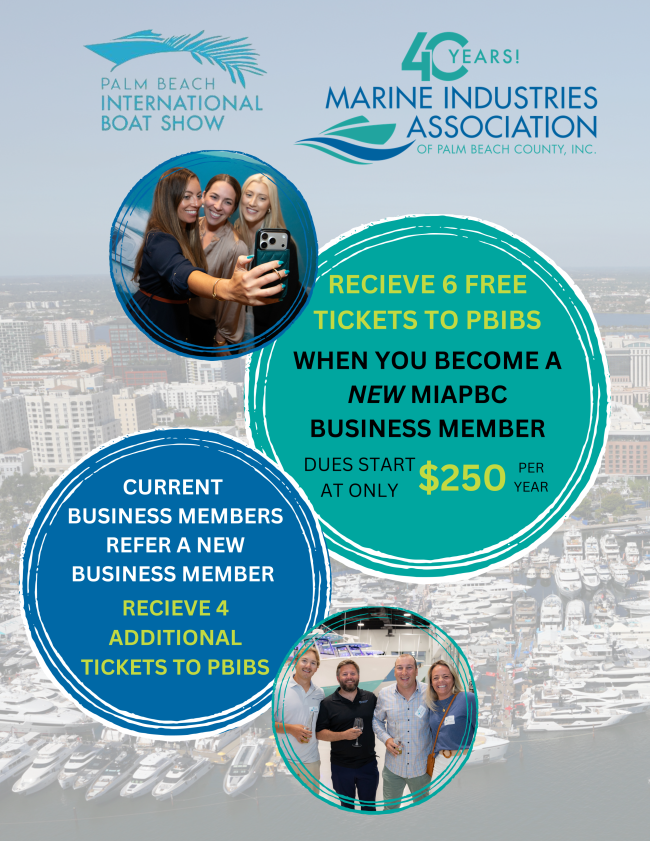 Refer a NEW business member and you both will receive four (4) additional Palm Beach International Boat Show tickets! Please email assistant@marinepbc.org when your referral joins us.