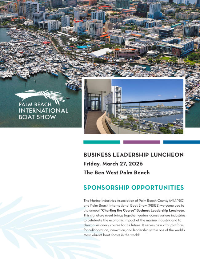 The Palm Beach International Boat Show is right around the corner and there will be a lot of information in this newsletter about ways to get involved. Members will also receive a separate email with opportunities. Now is a great time to upgrade your business membership to an Admiral membership if you’ve been thinking about it! In addition to many other perks, it comes with a pair of VIP tickets to PBIBS. Reach out to anyone on the team if you have any questions about it.